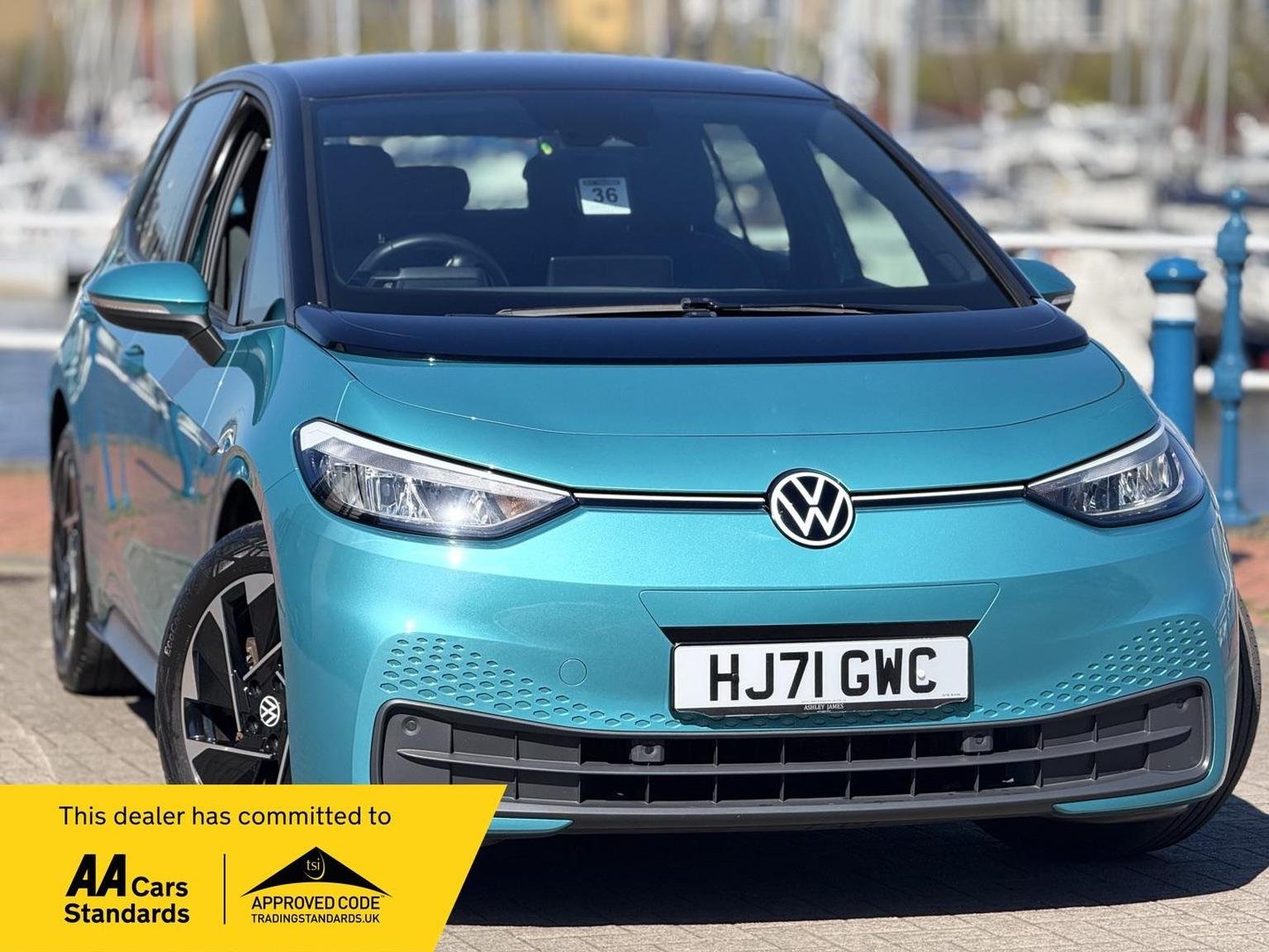 1-Zone Climatronic, 10in Infotainment System, 18in Steel Wheels - Aero, ABS - Anti-Lock Braking System, Adaptive Cruise Control ACC including Front Assist - Radar Sensor Controlled Distance - Monitoring System - City Emergency Braking System - Cruise Control and Speed Limiter, Airbag - Front Centre, Airbags - Curtain Front, Airbags - Driver, Airbags - Front Side, Airbags - Passenger, All-LED Headlights with Reflector Technology, Armrest Integrated into Front Seats, Black Roof, Body Coloured Bumpers - Door Handles and Door Mirrors with Integrated Indicators, Car2X Technology, Comfort Package, DAB Digital Radio, Digital Dashboard, Driver Alert System, Driver Profile Selection with Personalisation, Electric Windows - Front and Rear, Electronic Parking Brake with Auto Hold Function, Exterior E-Sound, Free WeConnect Start for First 3 Years, Heated Rear Window, ID Light, Infotainment Package, Interior Alarm, Interior Ambient Lighting - 10 Colours, Lane Assist, Mode 3 - 32-AMP - 7.2kW Charging Cable for Charging at Public Charge Points, NCAP Pack - Forward Collision Warning - Extended and Proactive Pedestrian Protection, Natural Voice Control, Parking Sensors - Front and Rear, Power Assisted Steering - Speed Sensitive, Remote Tailgate Unlocking, Security and Service - SOS Buttons, Special WeCharge Conditions for ID 3 Customers within First 3 Years, Steering Wheel - Multifunction, Tyre Mobility Kit, We Connect ID App, Wireless App Connect